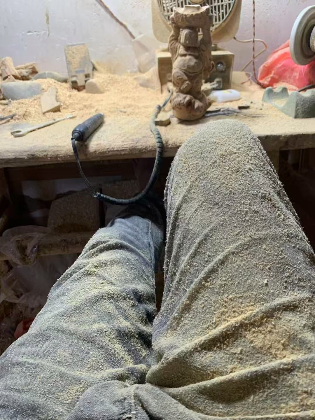 高級天然木彫り置物「山景人家」職人手作り 32cm